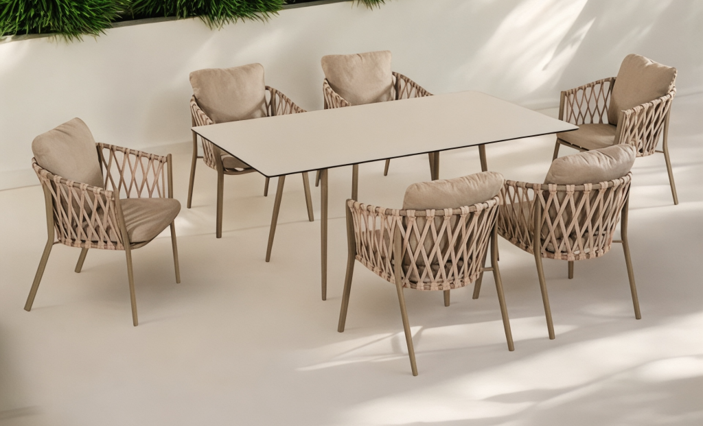 Rapunzel Oturma Grubu ile estetik alanların mimarisini dış mekanda yeniden keşfedin.