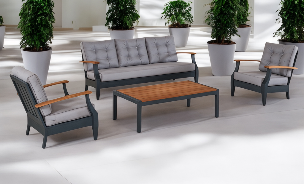 Dış mekan şıklığını ve konforunu bir araya getiren Valex Oturma Grubu, modern tasarımı ve dayanıklı malzemeleriyle bahçe, teras ve verandalarınız için mükemmel bir seçenek. Alüminyum iskeleti, hafif ama sağlam bir yapı sunarken, iroko ahşap kol detayları doğal bir zarafet katıyor. Dış mekan kumaşı, suya ve güneşe dayanıklı yapısıyla uzun yıllar konforlu kullanım sağlıyor.